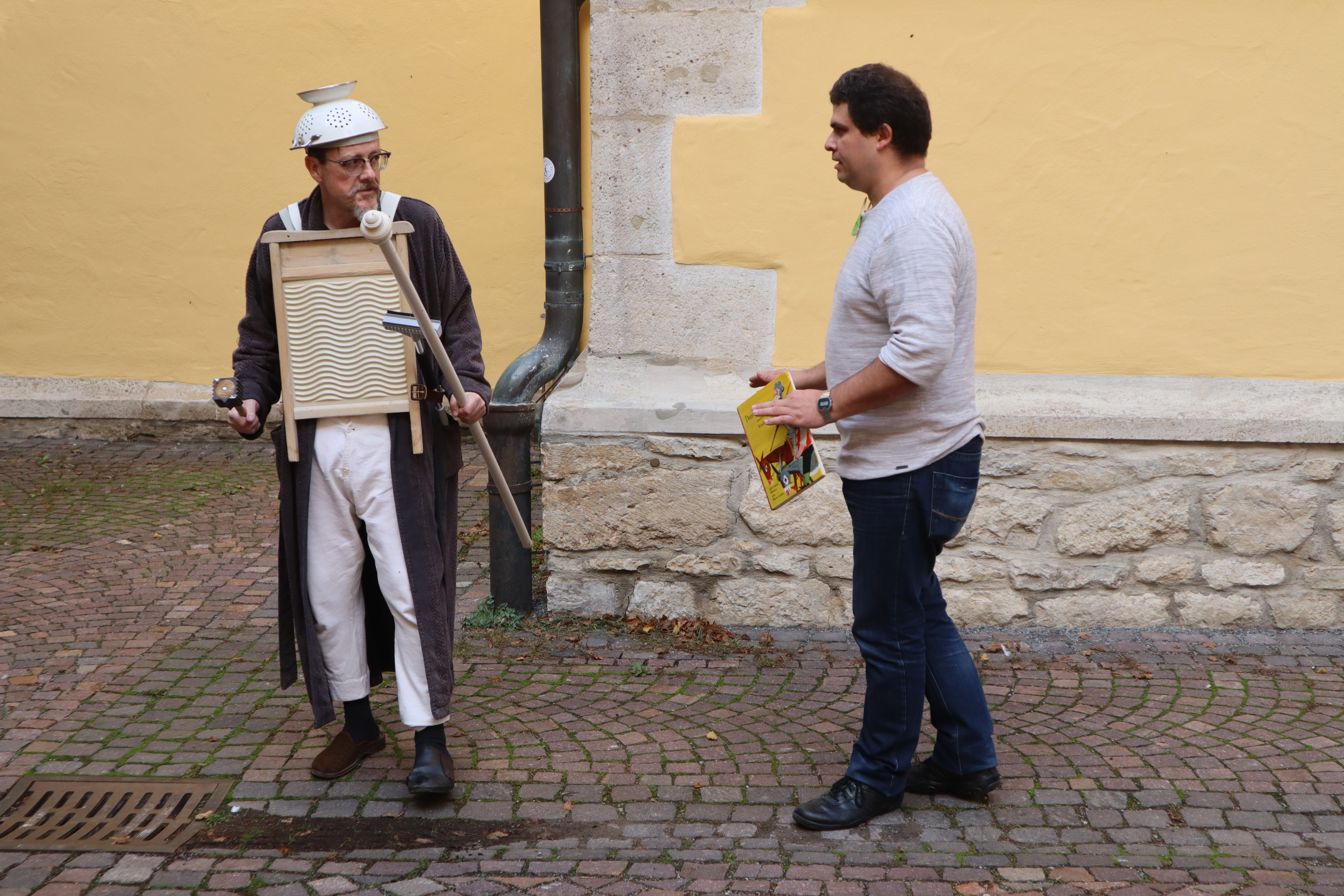 In ihrer fünften Theaterproduktion nimmt sich das inklusive Ensemble des Sprungbrett e.V. in Kooperation mit dem Deutschordensmuseum – ganz im Zeichen des Jubiläums des Mergentheimer Ritterordens – der wohl berühmtesten Rittergeschichte an: Dem Don Quichotte. Anhand der Nacherzählung von Erich Kästner macht sich die Spielgruppe gemeinsam mit dem Publikum auf den Weg Richtung Schloss. Dabei kommt einiges durcheinander. Die Mergentheimer Innenstadt wird zur spanischen la Mancha, der Stadtbummel ein gefährliches Ritterabenteuer und irgendwo werden sicherlich auch Windmühlen, pardon, Riesen auftauchen. Alles ist anders oder doch nicht? Das „Anderssein“ und der Umgang damit ist nicht nur Leitmotiv von Cervantes Don Quichotte sondern auch zentrales Thema des Sprungbrett e.V.