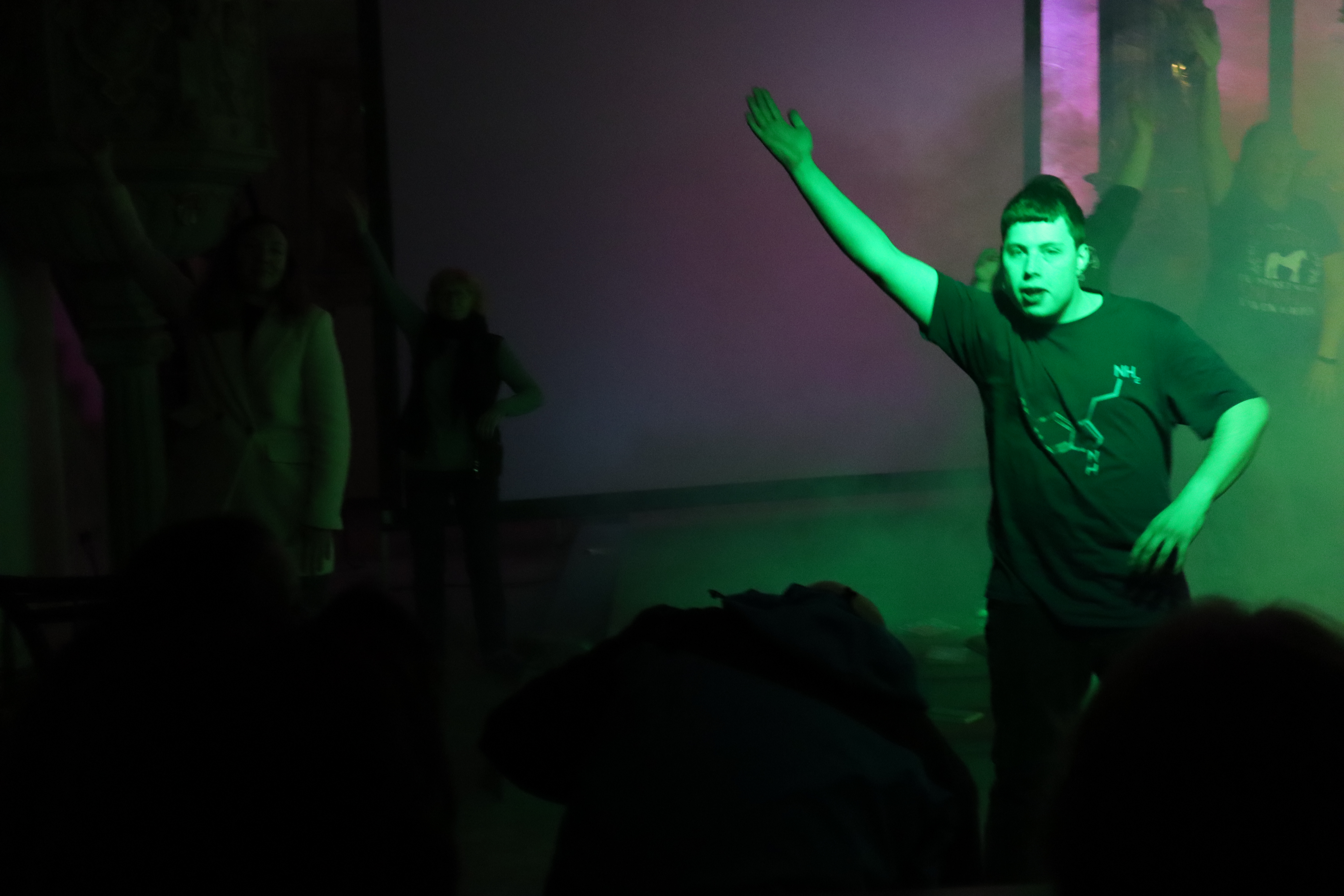 Hans im Glück ist scheinbar immer glücklich. Was ist dieses `Glücklichsein`? Was ist das Glück? Das Theaterensemble des Sprungbrett e.V. hat sich in seiner siebten Produktion dieser Frage angenommen. Aus „Hans im Glück“ wurde in einer kurzen, intensiven Probezeit eine bunte, vielschichtige und virtuose Bühnenperformance. „Hans im Glück“ ist eines der untypischsten Märchen der Gebrüder Grimm. Es gibt weder Prinzen noch Hexen, Wölfe, Teufel oder Hochzeiten. Im Zentrum steht Hans und seine Tauschgeschäfte, die ihn zwar materiell ärmer, emotional jedoch reicher weil glücklich machen. Was macht uns glücklich? Die Spielgruppe stellt Bezüge her, macht Verweise, sucht andere Zugänge zum Märchenstoff, stellt sich selbst in Relation und tanzt – weil tanzen glücklich macht.